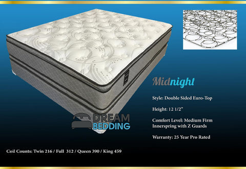 Midnight mattress Sleep Collection is a plush designer mattress with a Euro Pillow Top. Mixing fashionable stretch knit fabric with contrasting borders gives visual designer appeal, making your sleeping sanctuary...