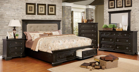 Wake up to the beauty of this glorious transitional style bed collection. The wire-brushed black finish adds a rustic touch while the antique inspired ring drawer pulls add a vintage...