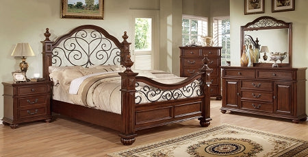 Swirly wrought iron detail adds a luxurious and stylish look to this traditional bed frame. The antique white finish bed frame can be accompanied by Nightstands, Dresser/Mirror, Chest, and Media...