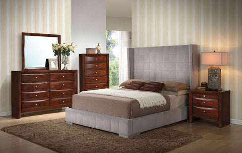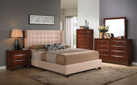 Compliment your bedroom with our Mallalai beige microfiber bed frame collection. Additional bedroom pieces sold separately. Nightstand 26" L x 17" W x 25" H, Dresser/Mirror 59" L x 17"...
