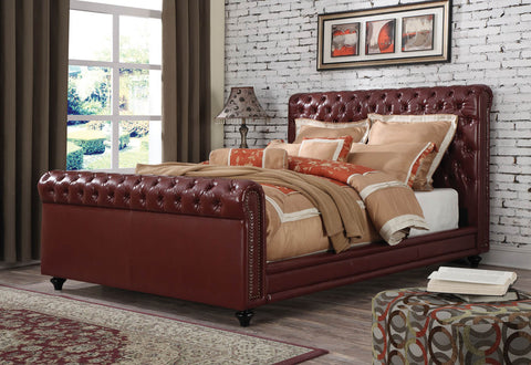 Burgundy Leather Upholstered Queen Bed Frame