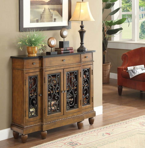 Our console take is unique for various characteristics such as its engraved doors. 60" L x 15" W x 16" H.