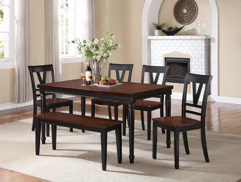 Blend country and contemporary, and that it what you get with this dining room set that features a rich cherry wood veneer table top framed in black leg supports with...