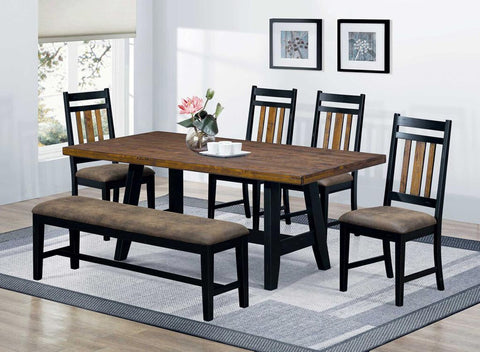 6 Pcs Rustic Brown/Black Dining Set