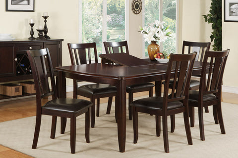 This dining collection features a 7-piece set of beautiful furniture dipped in a deep brown wood finish. A rectangular shaped table is surrounded by six chairs with faux leather seat...