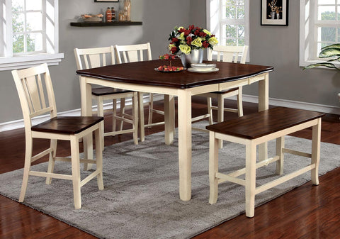 8 Pcs Cherry/Vintage White Counter Height Dining Table Set