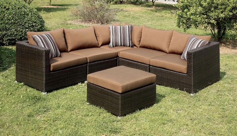 Style your outdoor oasis with this delightful two-tone sectional and ottoman set. The light fabric cushions contrast beautifully with the espresso wicker frame while ensuring ample relaxation is possible. Ottoman...
