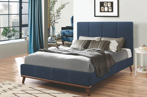 Charity Dark Blue Upholstered Platform Bed