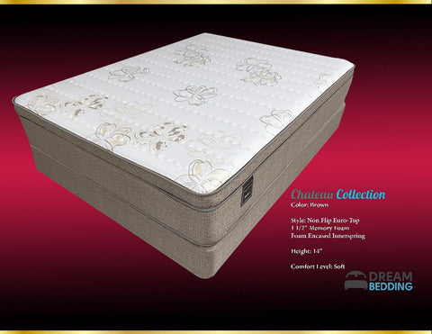 color: BrownEuro top non flip1 1/2 memory foam foam encased inner spring 14" height Comfort level: Soft