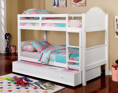 Brighten your children's room with the contemporary design of this elegantly shaped bunk bed! The curving shape of the top bunk's footboard and headboard brings a fun and sophisticated touch...