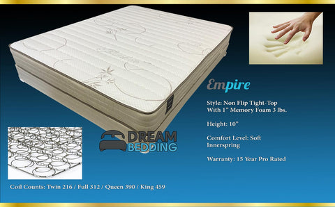 Style: Non flip tight topwith 1" memory foam 3 lbscomfort level: inner spring Soft 15 yr warranty