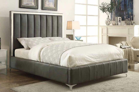 Jared Grey Leatherette & Stainless Steel Bed Frame