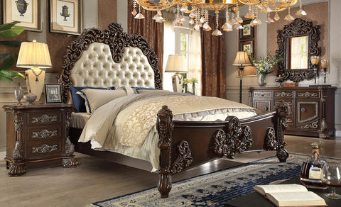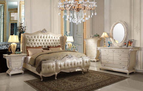 Elegant Cal King and Eastern King Bed Frame: Headboard: 88"H, Dresser: 77"L x 22"W x 39"H, Mirror: 54"L x 60"H, Night Stand: 36"L x 19"W x 31"H