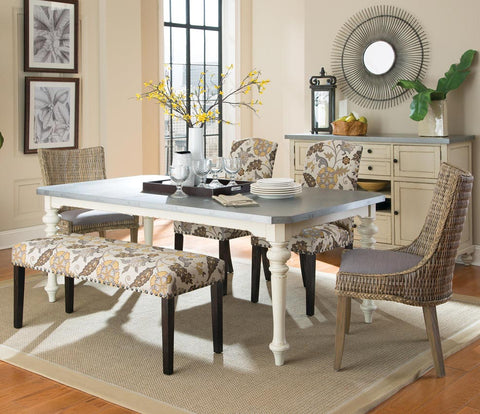 Matisse 6 Pcs Dining Set with Upholstered Bench and Woven Chairs