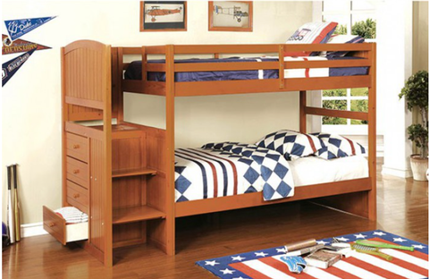 This multi-functional bunk bed has built in steps to the top bunk, built in drawers and is available with a full or twin size lower bunk bed. Cottage Style Built-In...