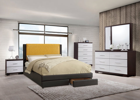 A splash of color mixed with a bold hue makes this bedframe the perfect match for the adventurous at heart. It features Ana upholstered frame and functional lower storage drawers. HB:...