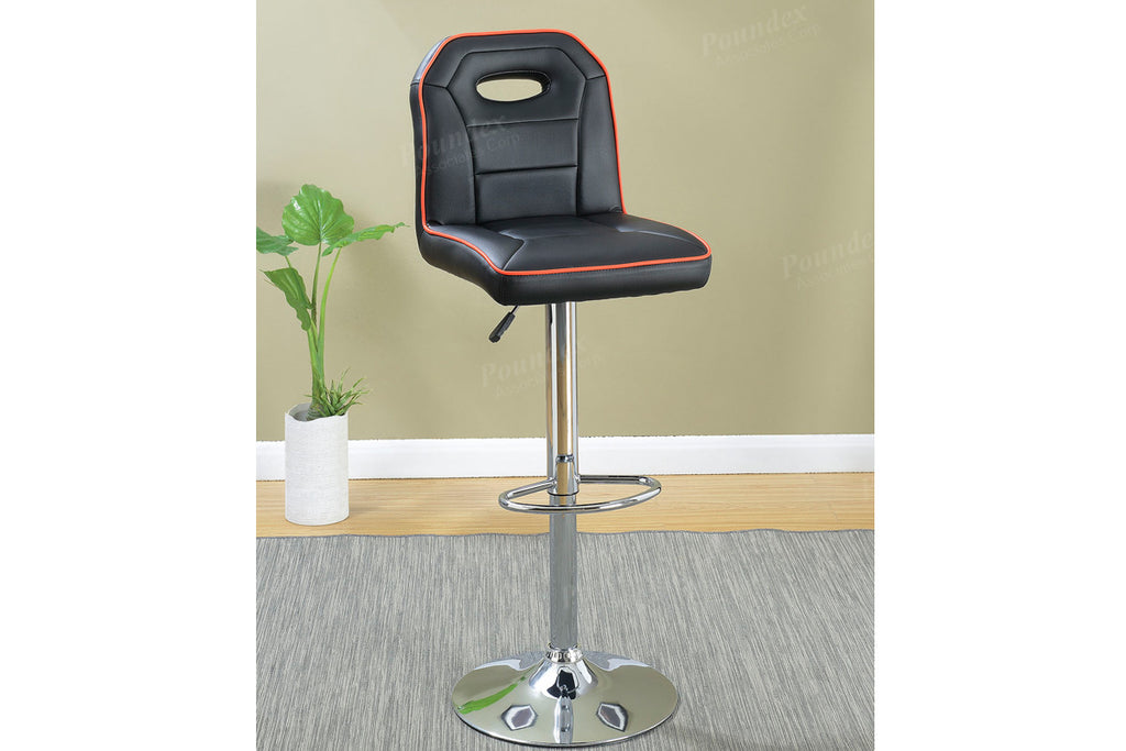 Reminiscent of a sports car, these counter-height stools feature faux leather upholstered seating with accent piping trim. Available in red, black, brown or silver.