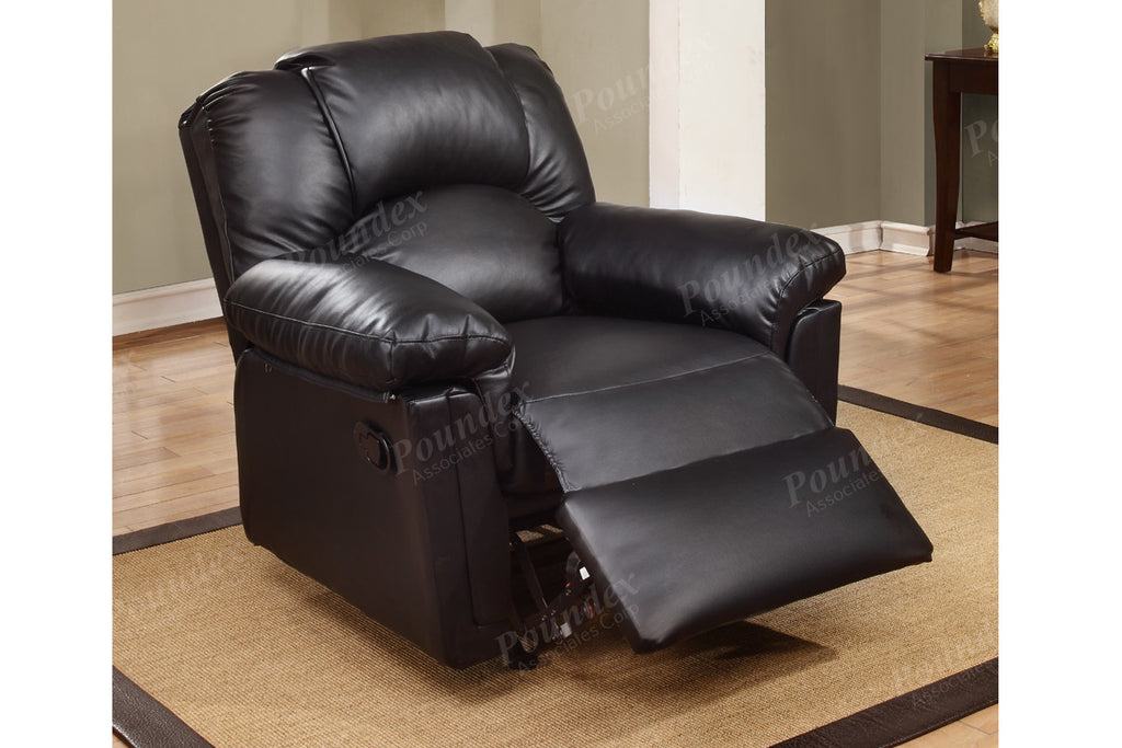 Crafted in bold and sleek lines and curves, this rocker recliner and motion sofa set features a collection of comfort furnishings in black bonded leather for a luxuriously designed living room. Held together by a solid wood frame, this collection is supported from the inside out.