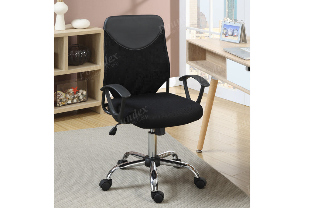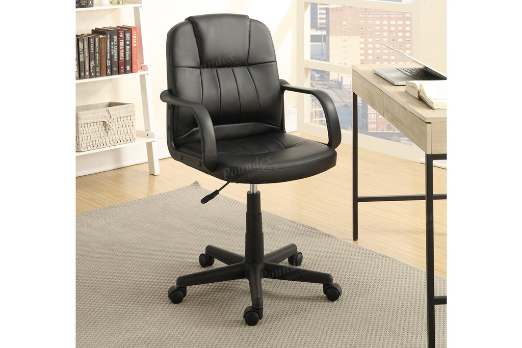 Simply your office space with this black round adjustable stool. 15" x 15" x 17 ~ 22"H PVC Faux Leather MDF