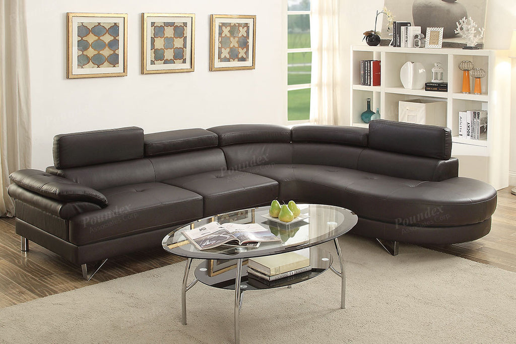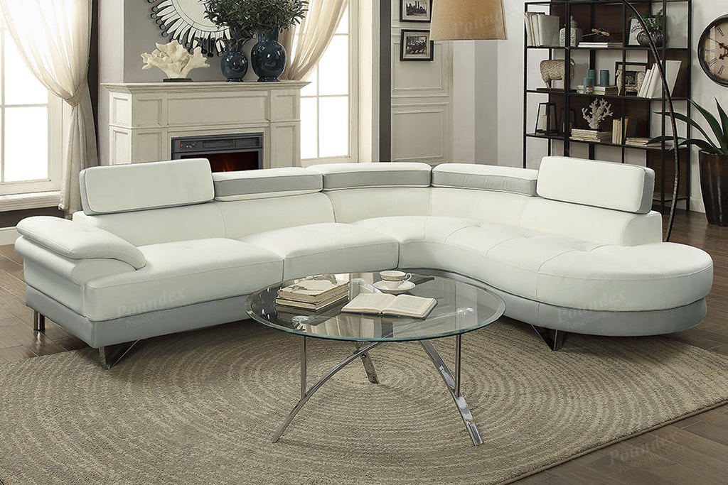 Take flight with this 2-piece sectional featuring a unit upholstered in a smooth faux leather with a wide seating are and two-paneled back cushion with adjustable headrests. Spruce the contemporary flavor in your home living space.