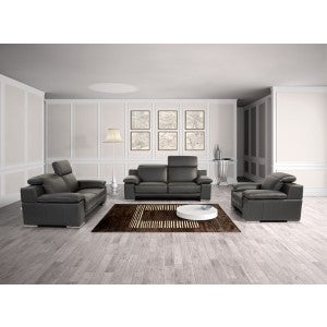 Set Includes: Sofa, Loveseat & Chair Upholstered In Full Italian Leather Panarea Black Cat H9506 Contrast Stitching Optional Adjustable Headrests Stainless Steel Legs Made In Italy Available In Other Upholstery...