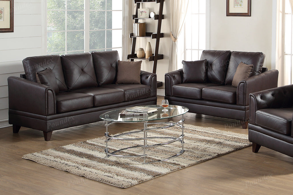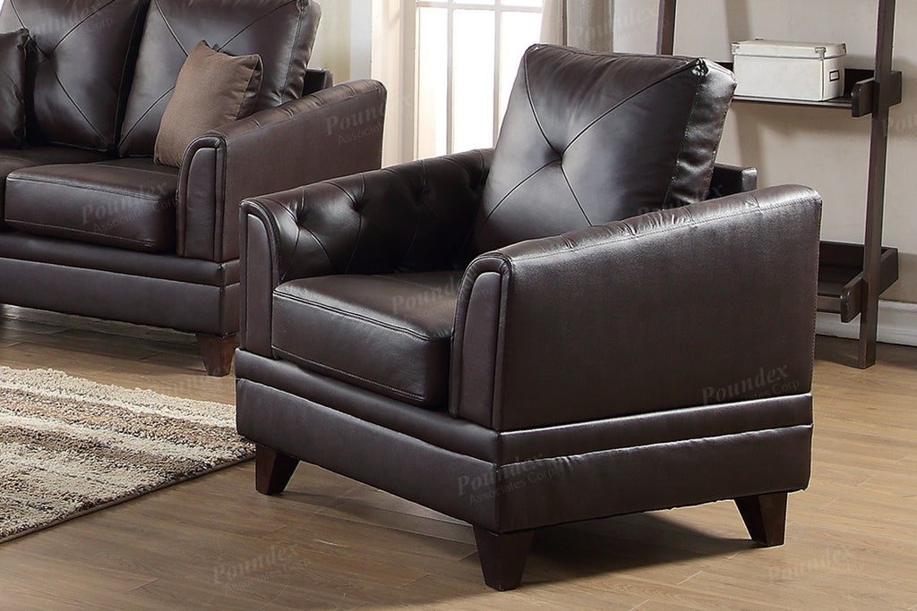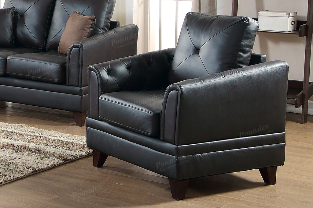 Complete your living room with this 2-piece leather sofa set that features a block design full of rich adorned furnishing for relaxing or entertaining. Each piece includes pillow back supports, plush seat cushions, curved armrest and short peg leg supports. Available in black or brown.